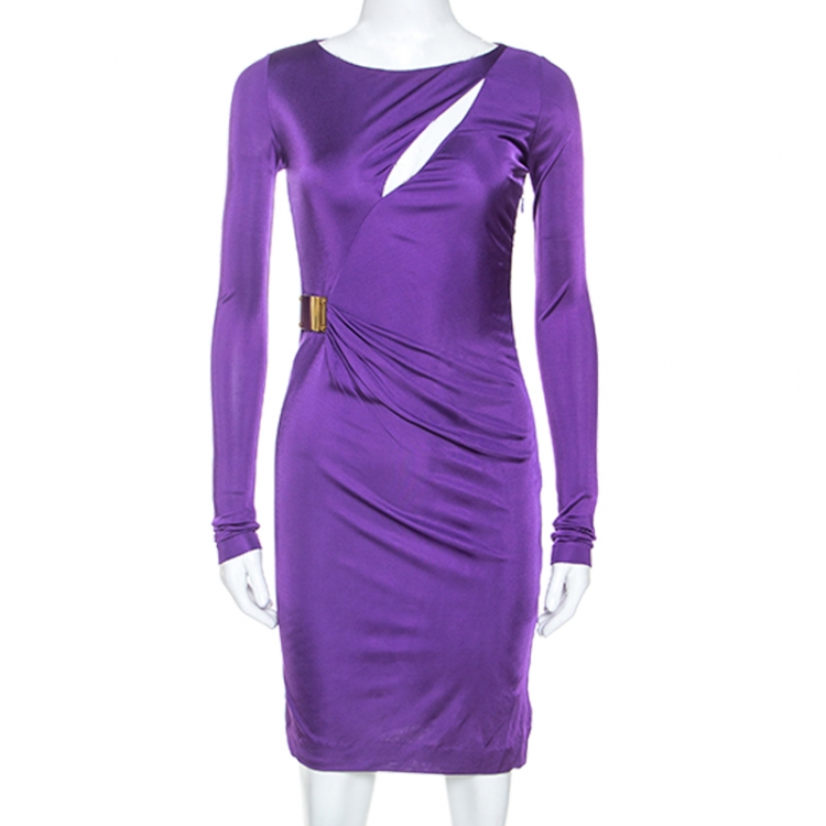 Pre Owned فستان إيميليو بوتشي خصر مكشك تفاصيل إبزيم جيرسيه بنفسجي S