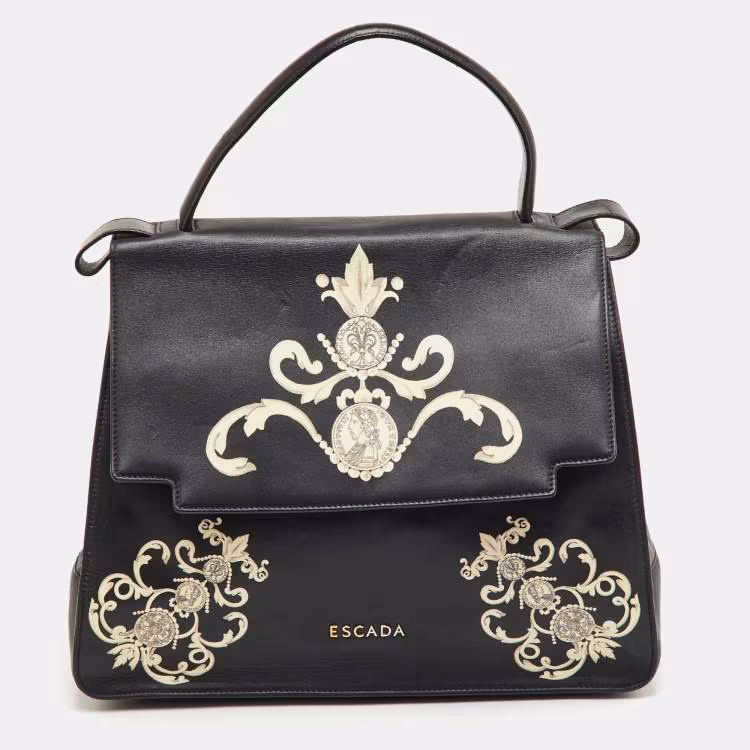 مملوكة مسبقًا حقيبة يد علوية إسكادا طباعة باروك أنيقة جلد أسود