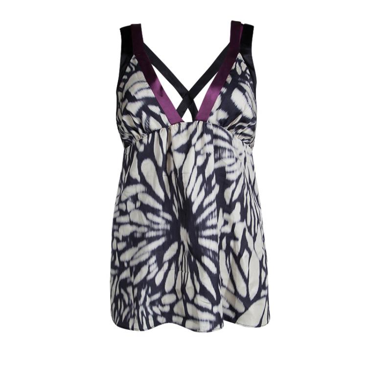 توب إيترو حرير طباعة مونوكرومية بأحزمة متعاكسة M
