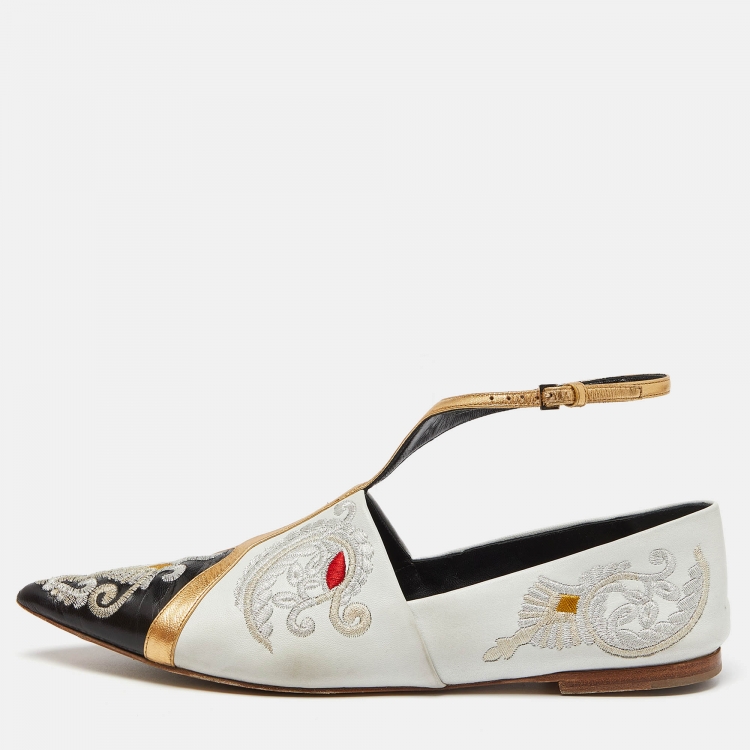 Etro Multicolor Embroidered Leather Ankle Strap Ballet Flats Size 39