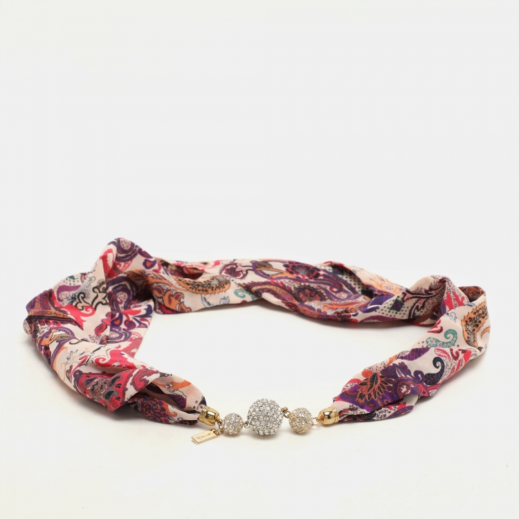 مملوكة مسبقًا Etro Multicolor Printed Silk Crystal Detail Neck Infinity Scarf