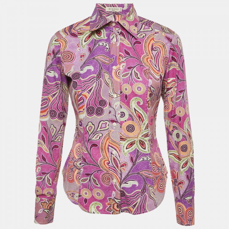 Pre Owned قميص إيترو قطن طباعة بيزلي بنفسجي مقاس متوسط (ميديوم)
