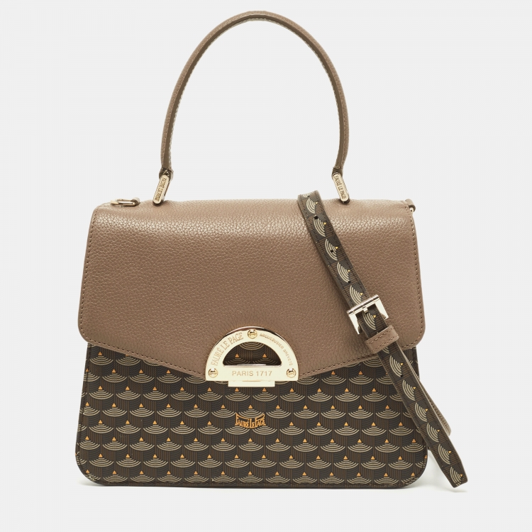 Faure Le Page Beige/Brown Coated Canvas and Leather Parade Top Handle Bag