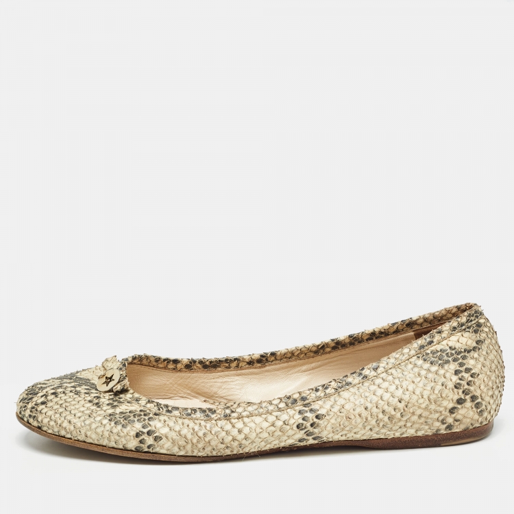Fendi Beige/Black Embossed Snakeskin Charm Ballet Flats Size 41