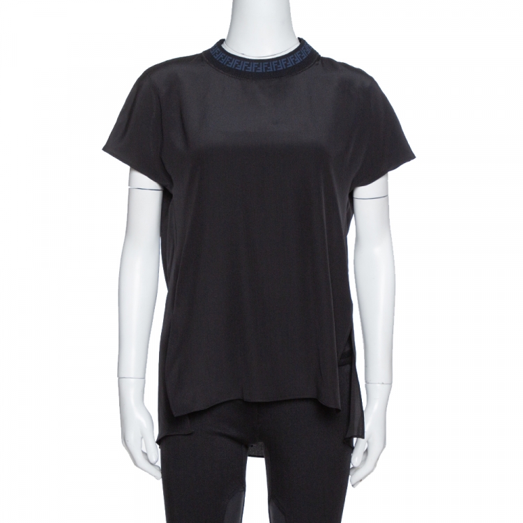 مملوكة مسبقًا توب فندي حرير أسود مضلع بالشعار S