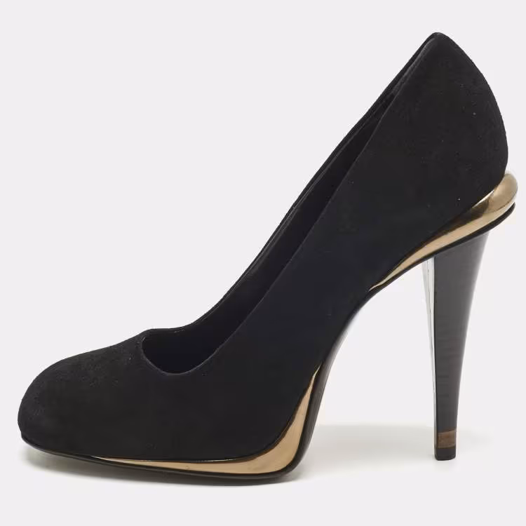 مملوكة مسبقًا حذاء كعب عالي فندي شمواه أسود مقدمة دائرية مقاس 40