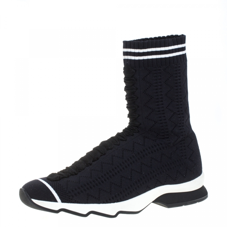 حذاء رياضى فندى مرتفع من أعلى جورب قماش تريكو أزرق / أسود مقاس 39