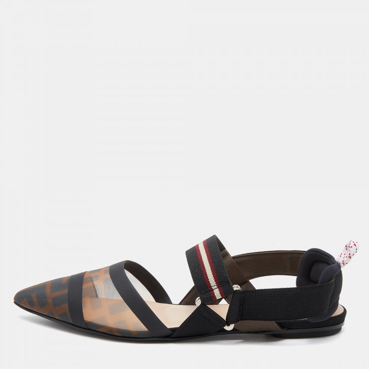 Fendi Black/Brown Zucca Mesh and Fabric Colibri Slingback Flats Size 37.5