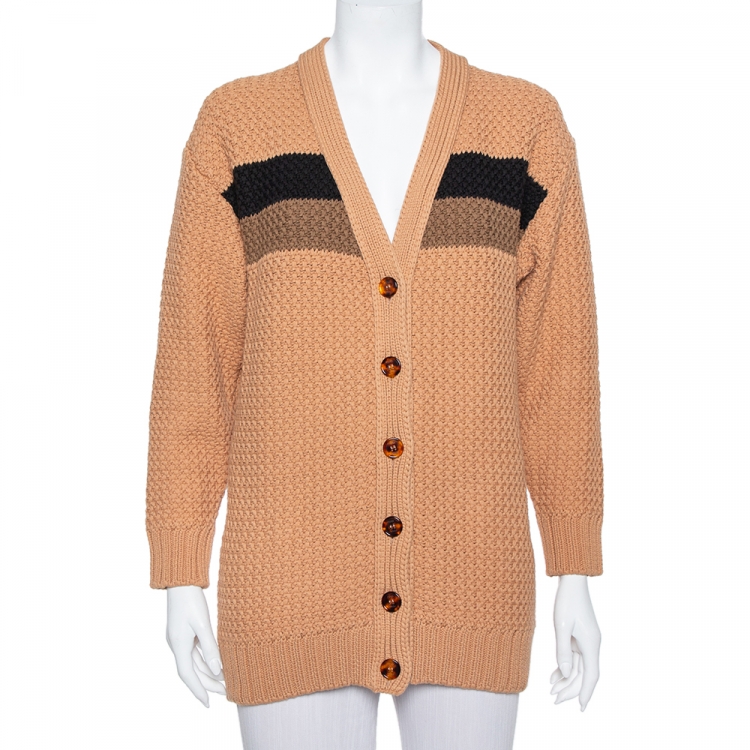 Pre Owned كارديغان فندي تريكو بني بخطوط مزينة مقاس إكس سمول - صغير جدًا