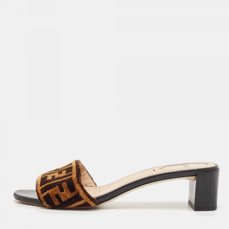 مملوكة مسبقًا صندل فنْدِي مفتوح من الأمام جلد مخملي بني مقاس 39