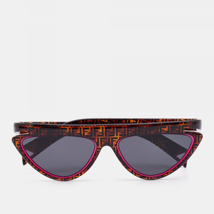 مملوكة مسبقًا Fendi Brown/Dark Blue Pink Logo FF 0383/S Cat Eye Sunglasses
