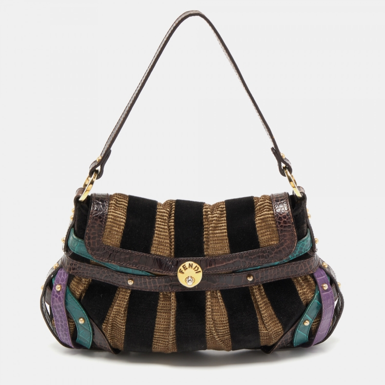 Pre Owned Fendi Multicolor Fabric and Alligator Chef Hobo