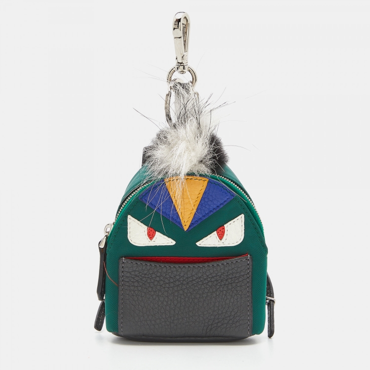 Fendi Multicolor Leather, Fur and Nylon Micro Monster Backpack Bag Charm