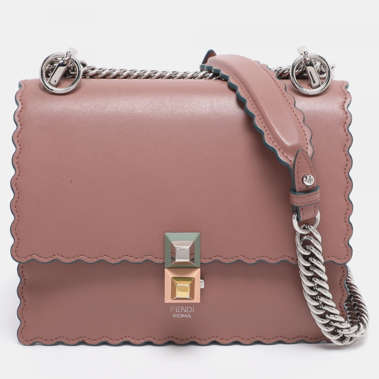 مملوكة مسبقًا حقيبة كتف فندي كان آي مصغرة جلد وردي قديم مزخرفة بمسامير بنمط متعرج