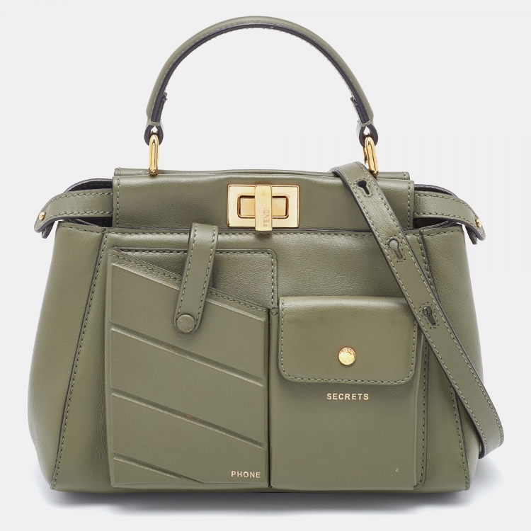 Fendi Olive Green Leather Mini Peekaboo Front Pocket Top Handle Bag