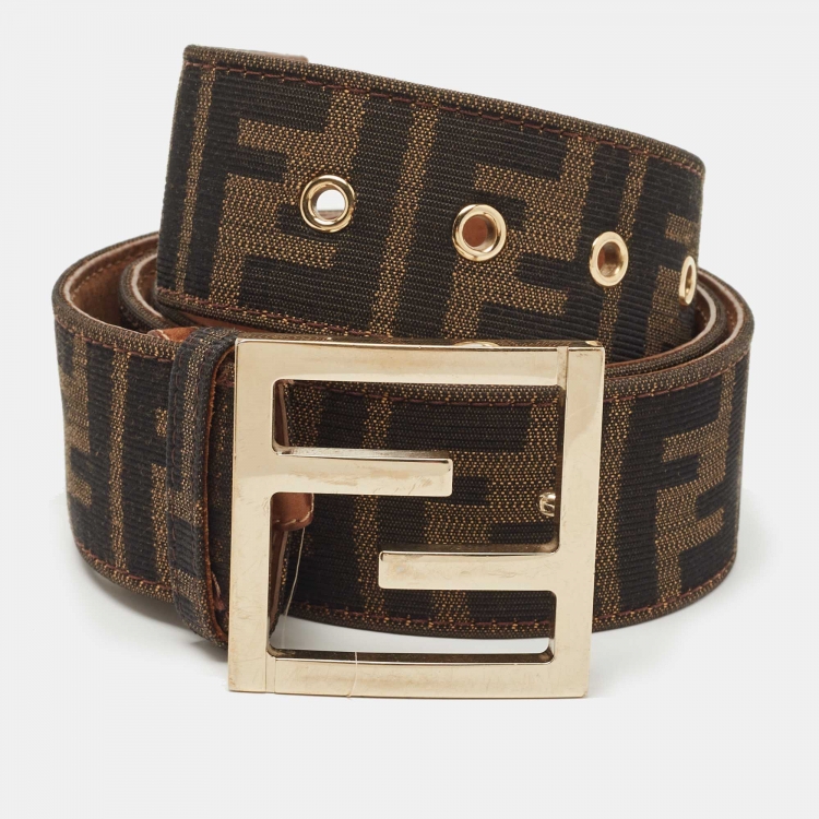 Fendi Tobacco Zucca Canvas and Leather FF Buckle Belt 100CM