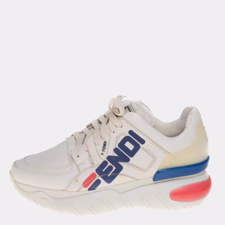 مملوكة مسبقًا حذاء رياضي فندي فندي-فيلا مانيل جلد أبيض ومطاط بالشعار عنق منخفض مقاس 39
