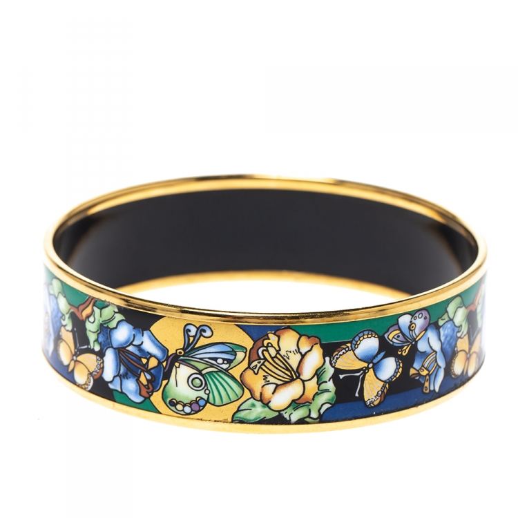 سوار فري ويل عريض مطلي بالذهب و مزين بإينامل فير متعدد الألوان فينتدج