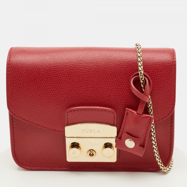 Furla Metropolis Mini Red Leather Flap Chain Shoulder Bag