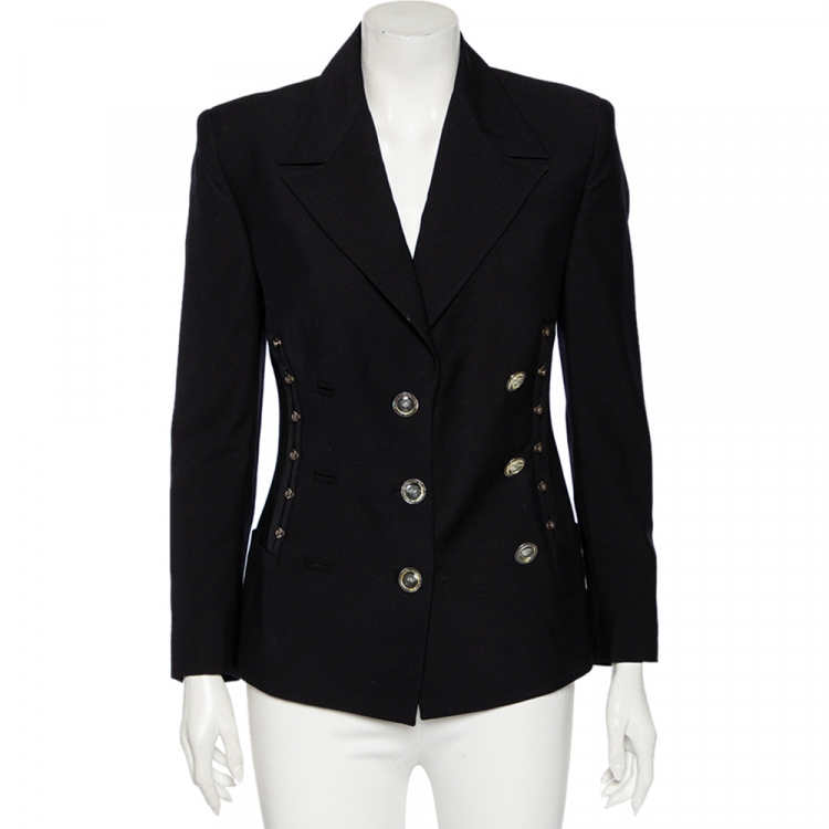 مملوكة مسبقًا جاكيت بليزر جيانا فيرساتشي صوف أسود بصفين أزرار مقاس صغير - سمول