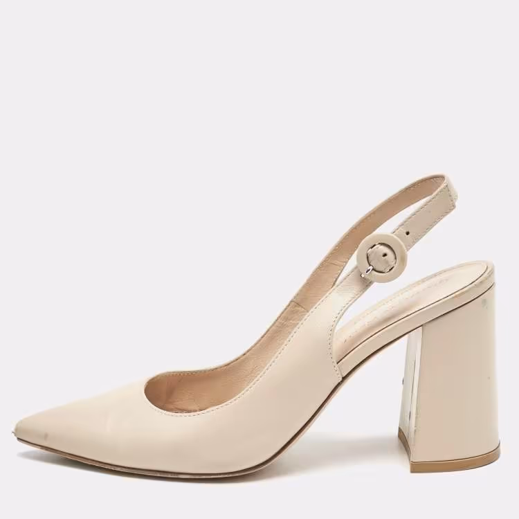 حذاء كعب عالي جيانفيتو روسي بكعب خارجي وجلدي بيج مقاس 36