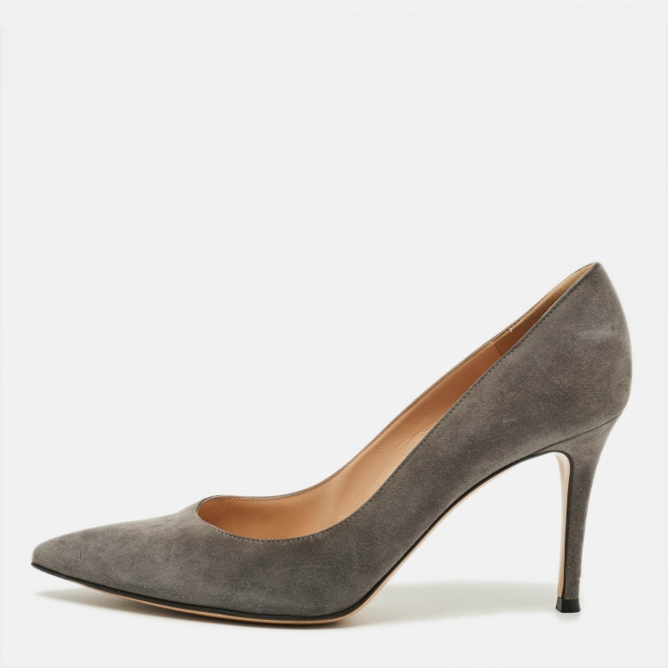 حذاء كعب عالي جيانفيتو روسي مقدمة مدببة من الشمواه الرمادي مقاس 38.5