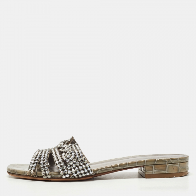 Gina Grey Croc Embossed Patent Leather Slide Flats Size 38.5