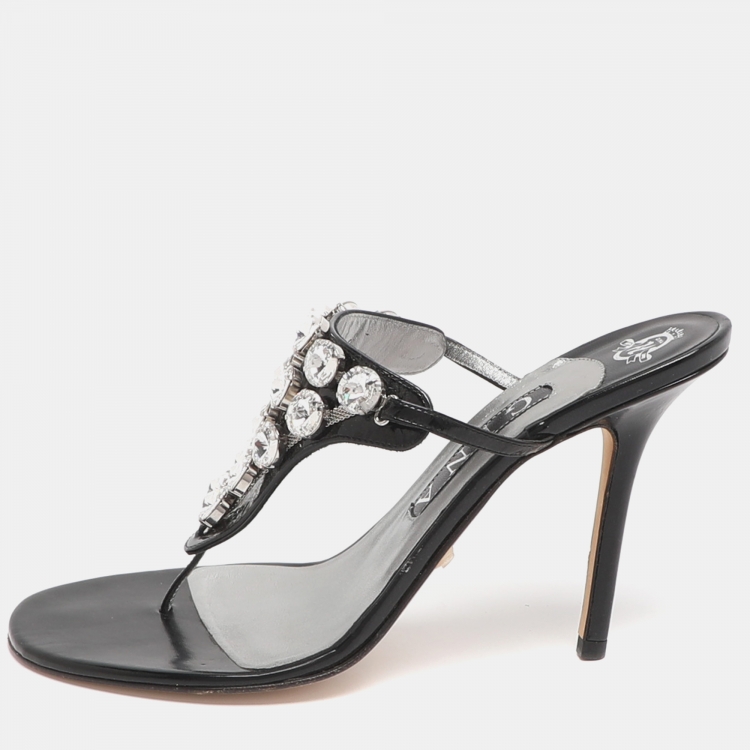 مملوكة مسبقًا صندل سيور جينا جلد لامع مزخرف بالكريستال أسود مقاس 39