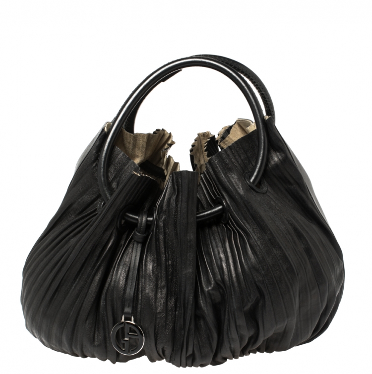 حقيبة هوبو جورجيو أرماني طيات جلد أسود