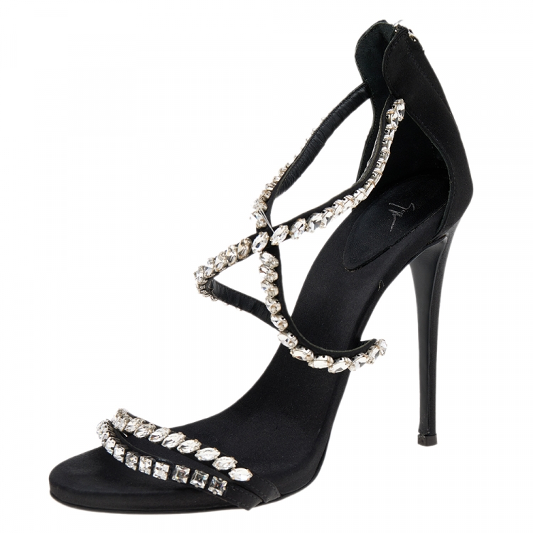 صندل جوسيبي زانوتي ساتان أسود مزخرف كريستال بسيور بسحاب مقاس 39