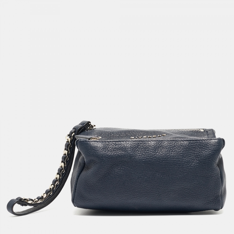 Givenchy Navy Blue Leather Pandora Double Zip Clutch