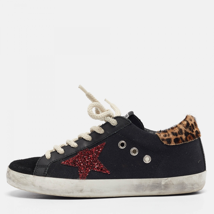 Golden Goose Black Calf Hair and Canvas Super Star Lace Up Sneakers Size 37