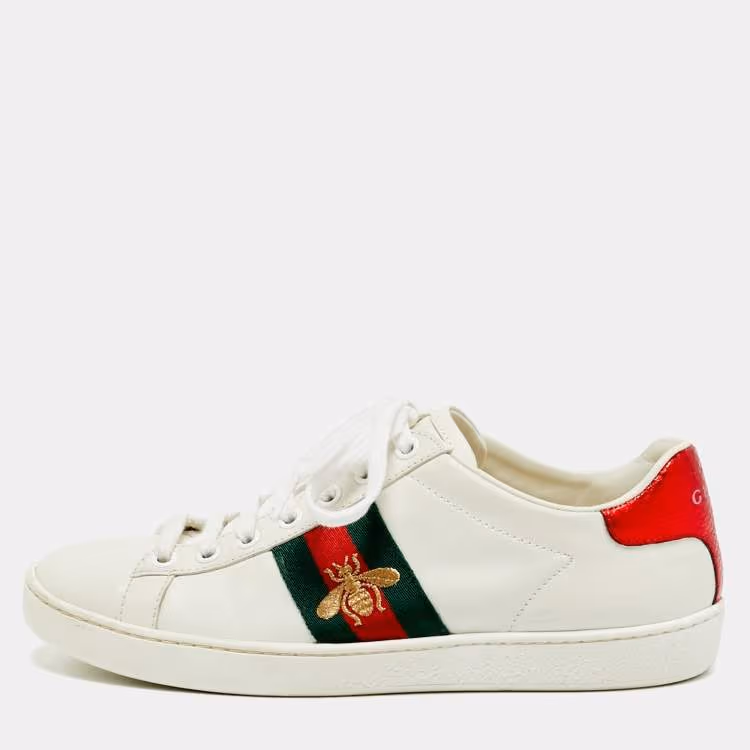 حذاء رياضي غوتشي جلد أبيض ونقشة جلد الأفعى أربطة مقاس 36