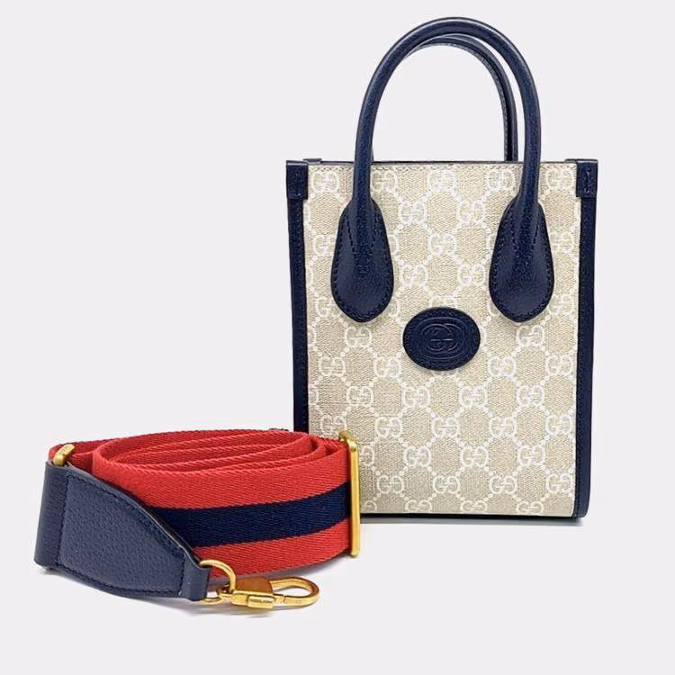 حقيبة يد غوتشي أوفيديا صغيرة بيج وأسود PVC بنقشة GG (699406)