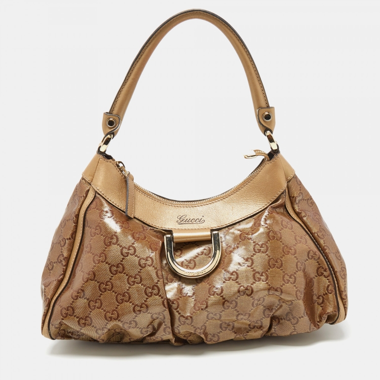 Pre Owned Gucci Beige GG Crystal Canvas and Leather Abbey D-Ring Hobo