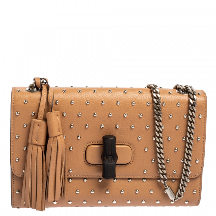 حقيبة كتف غوتشي ميس بامبو جلد بيج مرصع