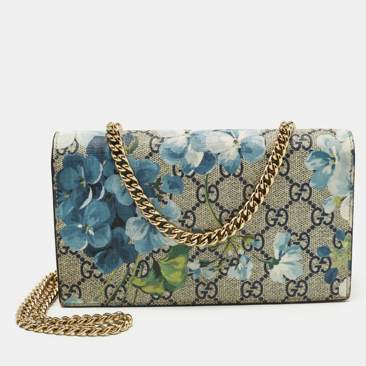محفظة غوتشي بلومز GG سوبر يم بيج/أزرق قماش بسلسلة