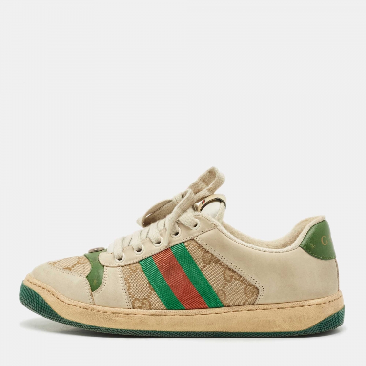 Pre Owned حذاء رياضي غوتشي سكرينر كانفاس جي جي بني/ بيج نوبوك جلد مقاس 39.5
