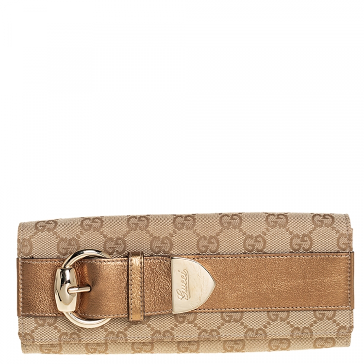 محفظة غوتشي كونتيننتال من الجلد والكانفاس البيج / الذهبي