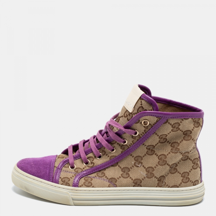 Pre Owned حذاء رياضي غوتشي سويدي وكانفاس جي جي وردي / �بيج عنق طويل مقاس 36