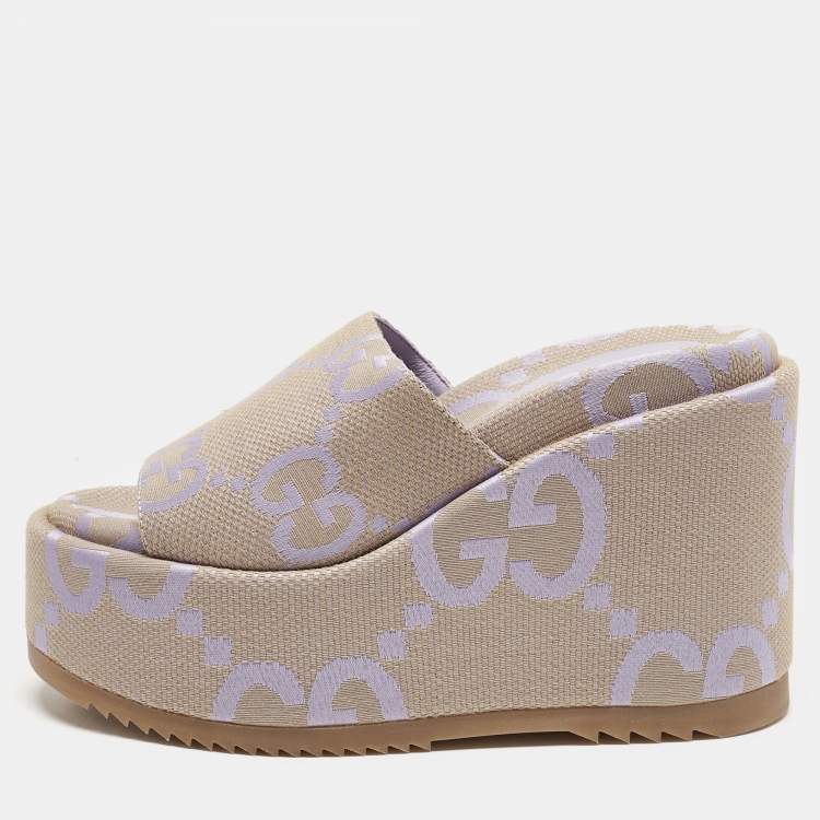 صندل غوتشي قماشي جومبو GG منصة بيج/أرجواني مقاس 35