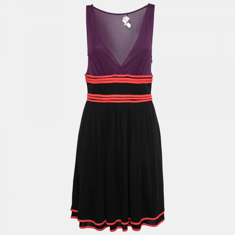 فستان غوتشي تريكو بنفسجي وأسود برقبة واسعة بلا أكمام مقاس متوسط - ميديوم