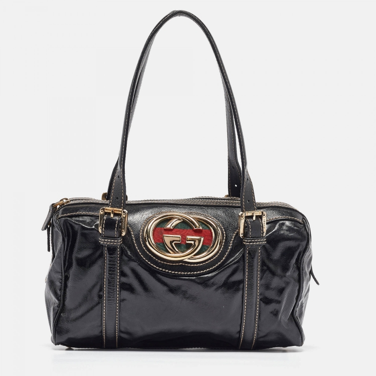 Pre Owned Gucci Black Coated Fabric Britt Boston Bag
