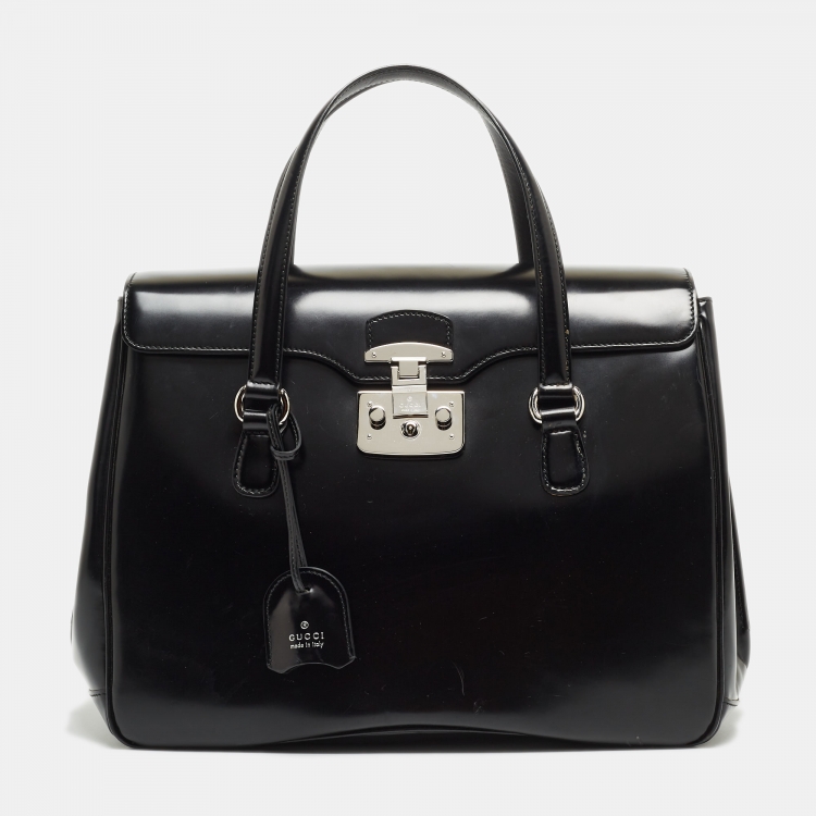 Gucci Black Glossy Leather Large Lady Lock Satchel