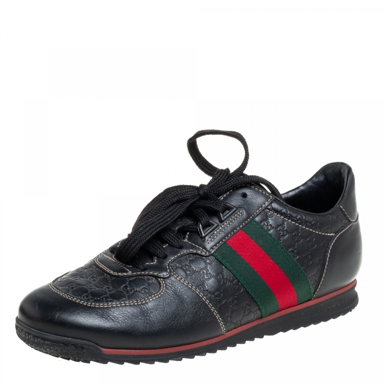 حذاء رياضي غوتشي جلد غوتشيسيما أسود نمط ويب عنق منخفض مقاس 38