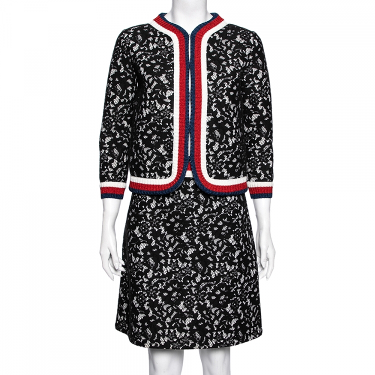 طقم سترة وتنورة غوتشي سكوبا سارتوريال دانتيل أسود بحواف مخطط بنمط ويب مقاس صغير - سمول / متوسط - ميديوم