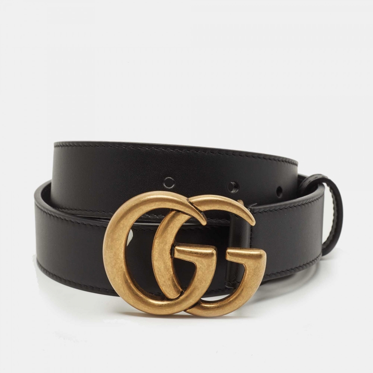 مملوكة مسبقًا Gucci Black Leather GG Marmont Belt 75CM