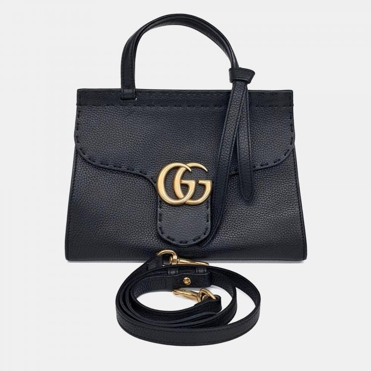 Pre Owned حقيبة يد وكتف غوتشي مارمونت جي جي جلد أسود صغيرة (442622)