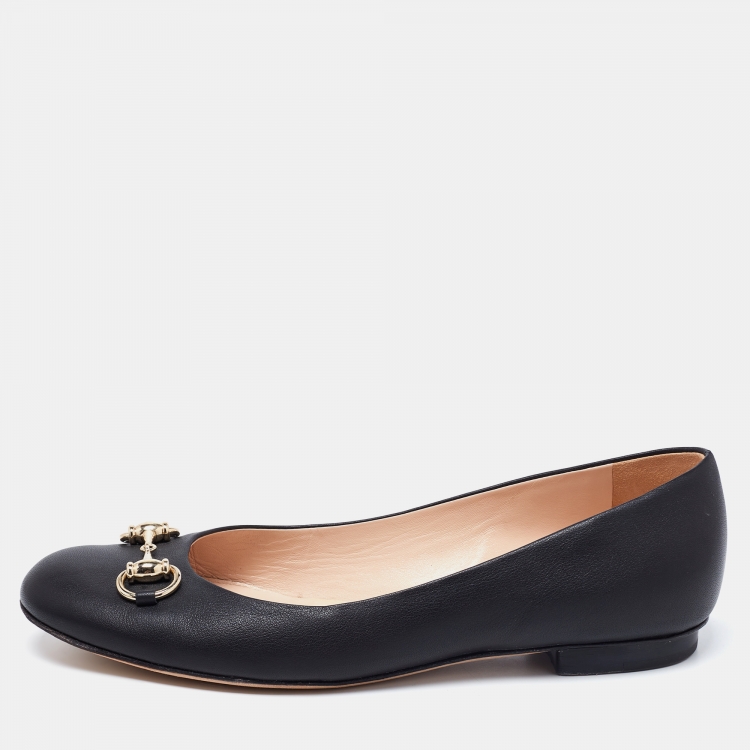 Pre Owned حذاء باليرينا فلات غوتشي هورسبيت جلد أسود مقاس 37.5