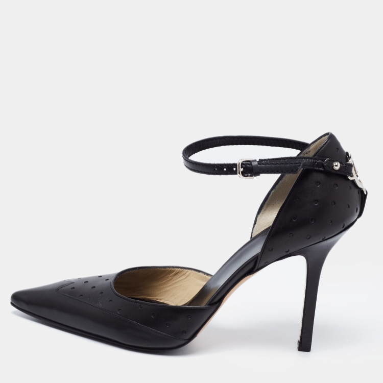 Pre Owned Gucci Black Leather Interlocking G Ankle Strap Sandals Size 38